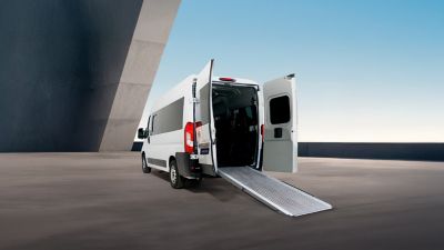 - Com espaço interno otimizado, rampa e plataforma para acesso facilitado, conta com sistemas que garantem estabilidade, segurança e flexibilidade para 9 lugares ou 7 lugares mais 2 cadeiras de rodas.
